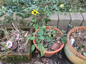 Dann begrüßte mich jetzt (!) diese Sonnenhut-Blüte (mal abgesehen von den Schneeglöckchen-Kissen).
