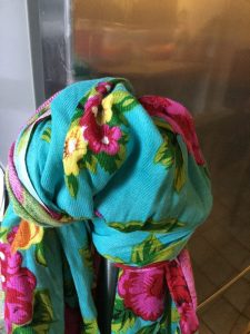 Und ich tue selbst noch etwas, um den Frühling zu locken. Dieser Schal begleitet mich schon einige Jahre, seine knalligen Farben stämmen sich gegen das Grau.