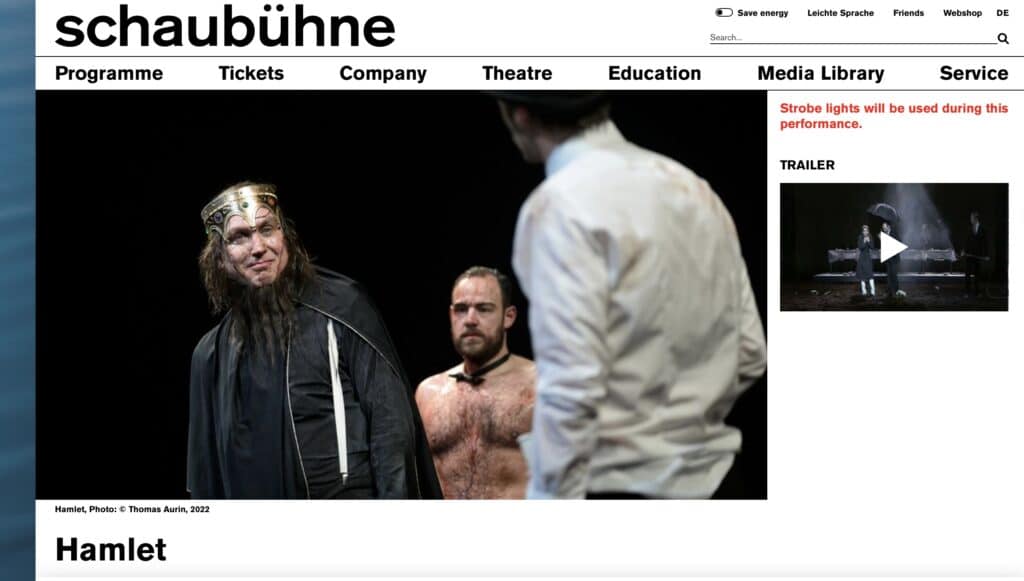 Letzte Woche waren wir ein paar Tage in Berlin. Der Hauptgrund war der Besuch einer Theatervorstellung: Der Schauspieler Lars Eidinger spielt seit 2008 Shakespeares „Hamlet“ in der Schaubühne auf dem Kurfürstendamm.