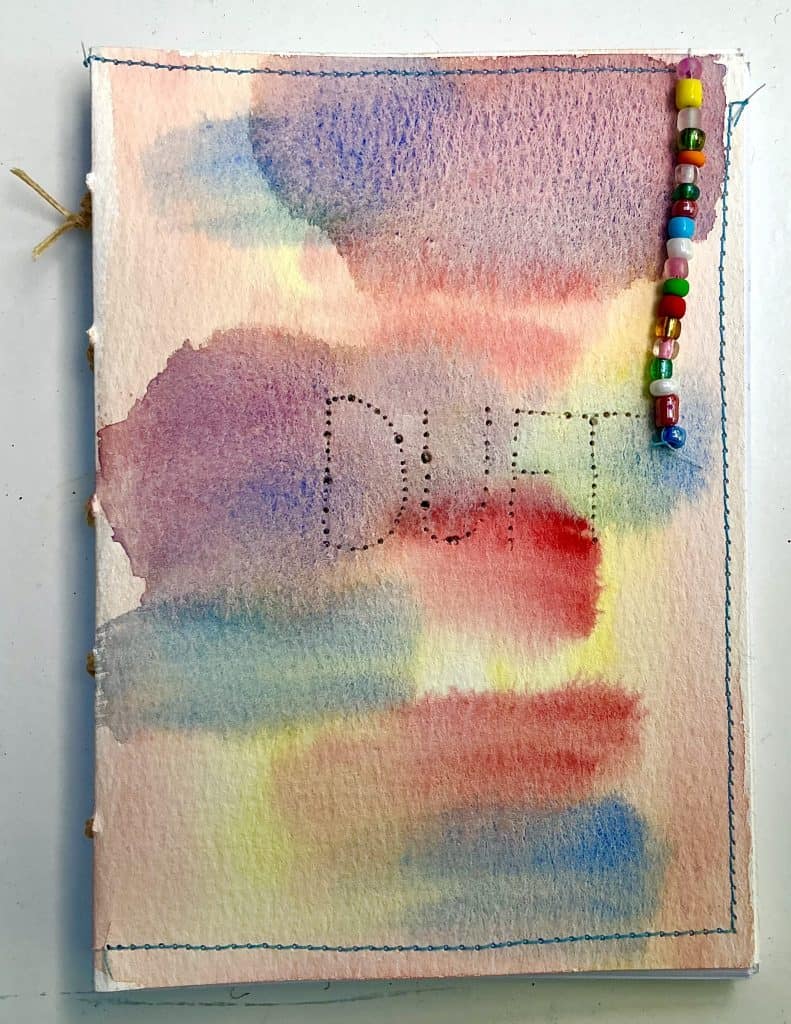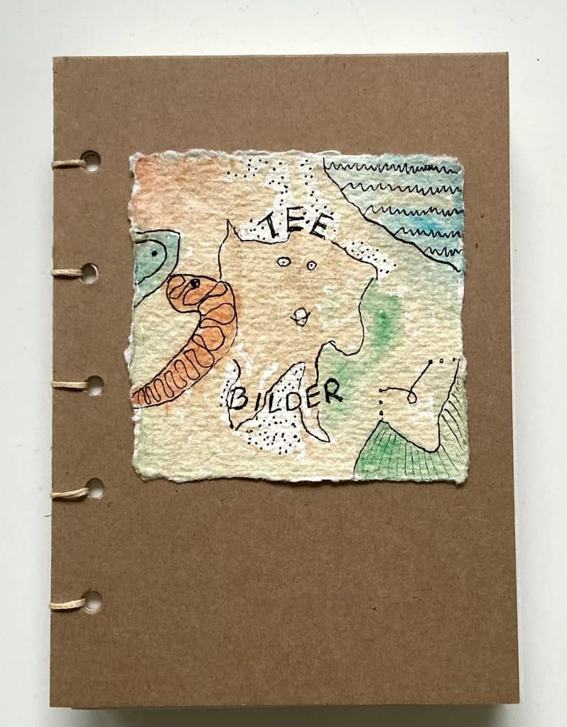 Das zweite Buch hat als Deckel ein gefaltetes Aquarellpapier, wie oben links zu sehen ist.