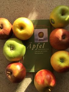Ein knapp 100 seitiges illustriertes Büchlein, das einem „Die Welt der Äpfel“ eröffnet. Die Themen sind sehr vielfältig. Wussten Sie, dass der Eva-Apfel in der Bibel nur allgemein als Frucht bezeichnet wird? Was Äpfel in Stillleben-Bildern bedeuten? Ein Arbeitstag auf einem Apfel-Bauernhof wird beschrieben, wir werden an Newtons Apfel erinnert, lernen Apfelfeste kennen, bekommen die medizinischen Vorteile des Apfelkonsums präsentiert und staunen über sooo viele Apfelsorten.