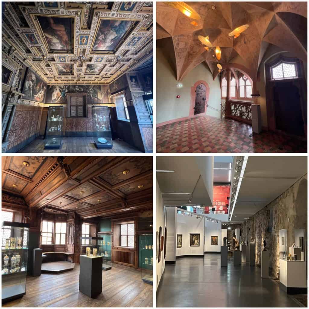 Und dann die Sammlung an Bildern, Keramiken, Glas und Skulpturen- großer Kunstgenuss! Im Gewölbe sind mittelalterliche Werke versammelt (siehe Collage 1 Bild unten rechts). im Erdgeschoss kann man Glaskunst, Bilder und Deckenbemalungen bewundern.