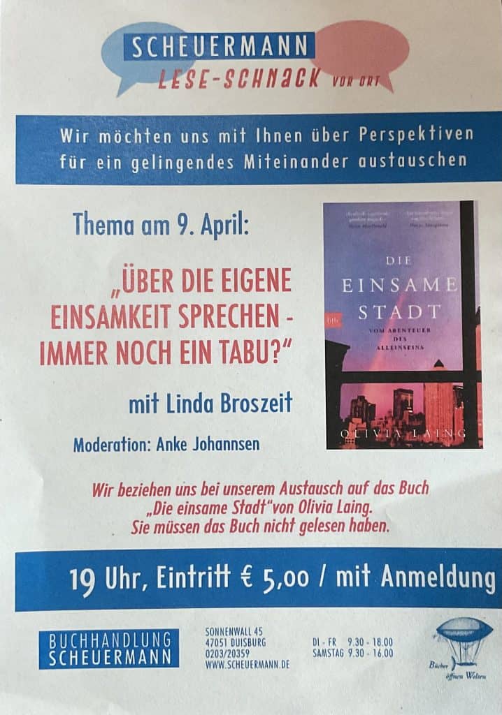 Man ist nicht alleine, wenn man einsam ist! Deshalb lade ich Sie heute zu einer Veranstaltung ein: