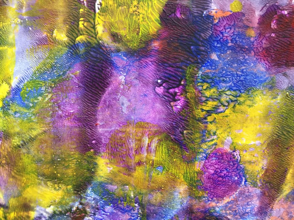 Sie sehen die Muster? Dies kommt durch zuviel Farbe. Fand ich interessant, aber eigentlich wollte ich so viele Schlieren nicht. So trug ich die Farbe gleichmäßiger mit einem Pinsel auf und bekam das Ergebnis: