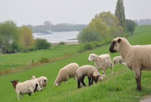 Nach dem Besuch der Scheune wollte ich noch ein bisschen am Rhein spazieren gehen. So fuhr ich zurück und hielt hier an, weil die Aussicht besonders schön war und ich auch „Hallo“ sagen wollte zu vielen Osterlämmchen: