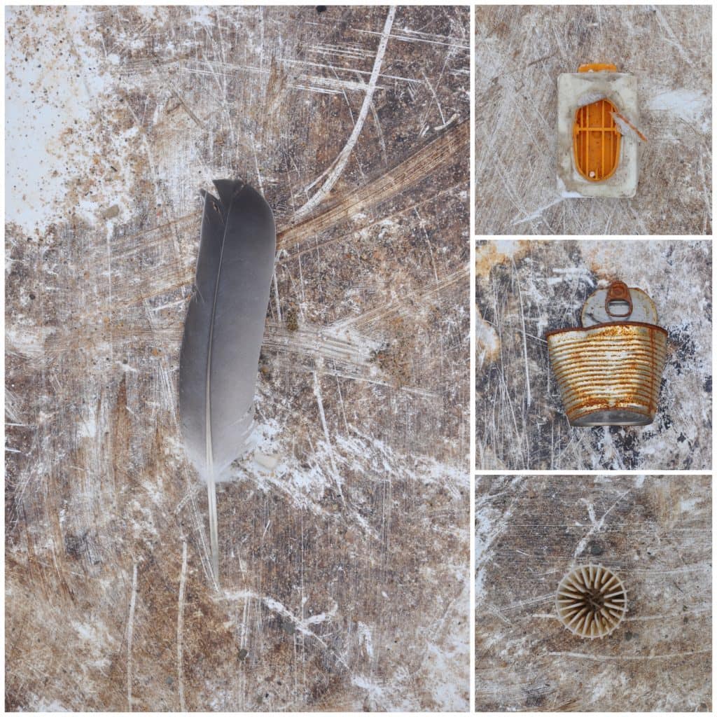 Ich ging zum Rhein hinunter und meine Nase glitt wie üblich knapp über dem Boden- es gibt immer so Vieles zu entdecken! So fand ich z.B. ein Brett, das man toll als Hintergrund für Fotos nehmen kann und probierte es gleich mit ein paar Fundstücken aus: