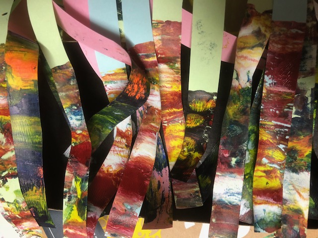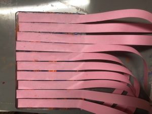 Es gibt zig unterschiedliche Papierarten und ich wollte wissen, welche sich besonders gut zum Bedrucken mit der Gelplatte eignen. Um es kurz zu machen: Man kann fast jedes Papier nehmen außer dickere Papierservietten, die beim Abziehen von der Platte zerreißen. Bedingt eignet sich auch nur Aquarellpapier, auch hier ist mir Papier kaputt gegangen. Meine Favoriten sind gebrauchte Briefumschläge, Packpapier, alte Buchseiten, Butterbrotpapier, alte Straßenkarten, Glanzfolie und gebrauchtes Geschenkpapier (Ja, ich bügele jetzt wie früher Geschenkpapier wieder auf und gestalte es dann neu). Möglich sind aber auch Pappen, Zeitungsbeilagen, Raufasertapete, selbst Plastikeinkaufstüten, Alufolie oder Frischhaltefolie gehen.