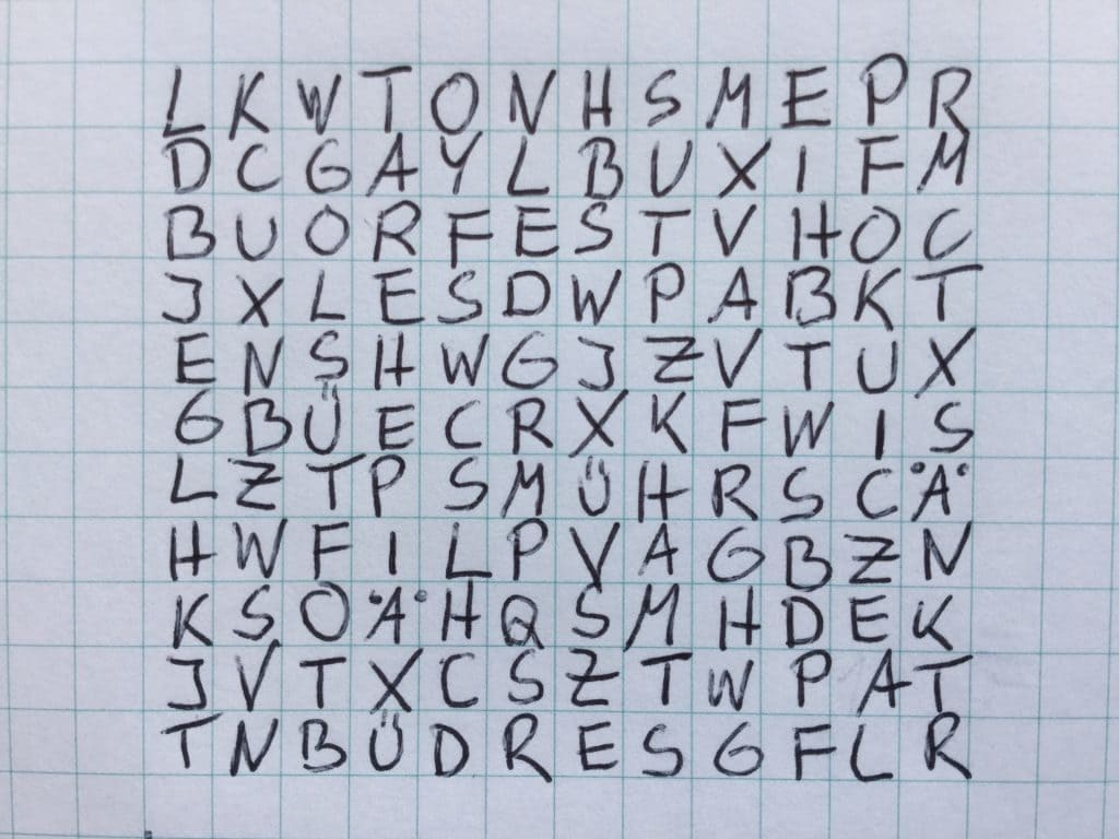 In diesem Buchstabenkuddelmuddel finden Sie auch die Buchstaben für das Wort „Mond“. Wie oft können Sie das Wort aus den vorhandenen Buchstaben bilden, wenn Sie jeden Buchstaben nur einmal benutzen? Morgen Abend verrate ich Ihnen die Anzahl.
