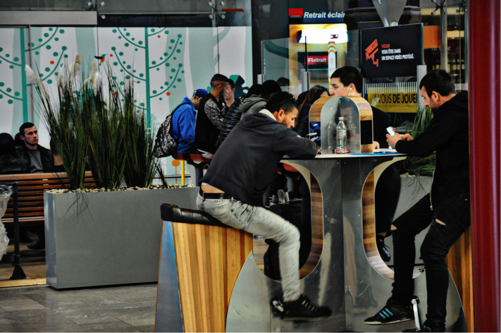 Im Bahnhof von Metz entdeckte ich mehrere Tische, an denen junge Männer saßen und sich unterhielten oder auf ihre Handys starten. Irgendwie bewegten sie sich komisch dabei und ich sah genauer hin. Ihre Füße standen auf Pedalen…sie führen Rad und…haben damit ihre Handys wieder aufgeladen.