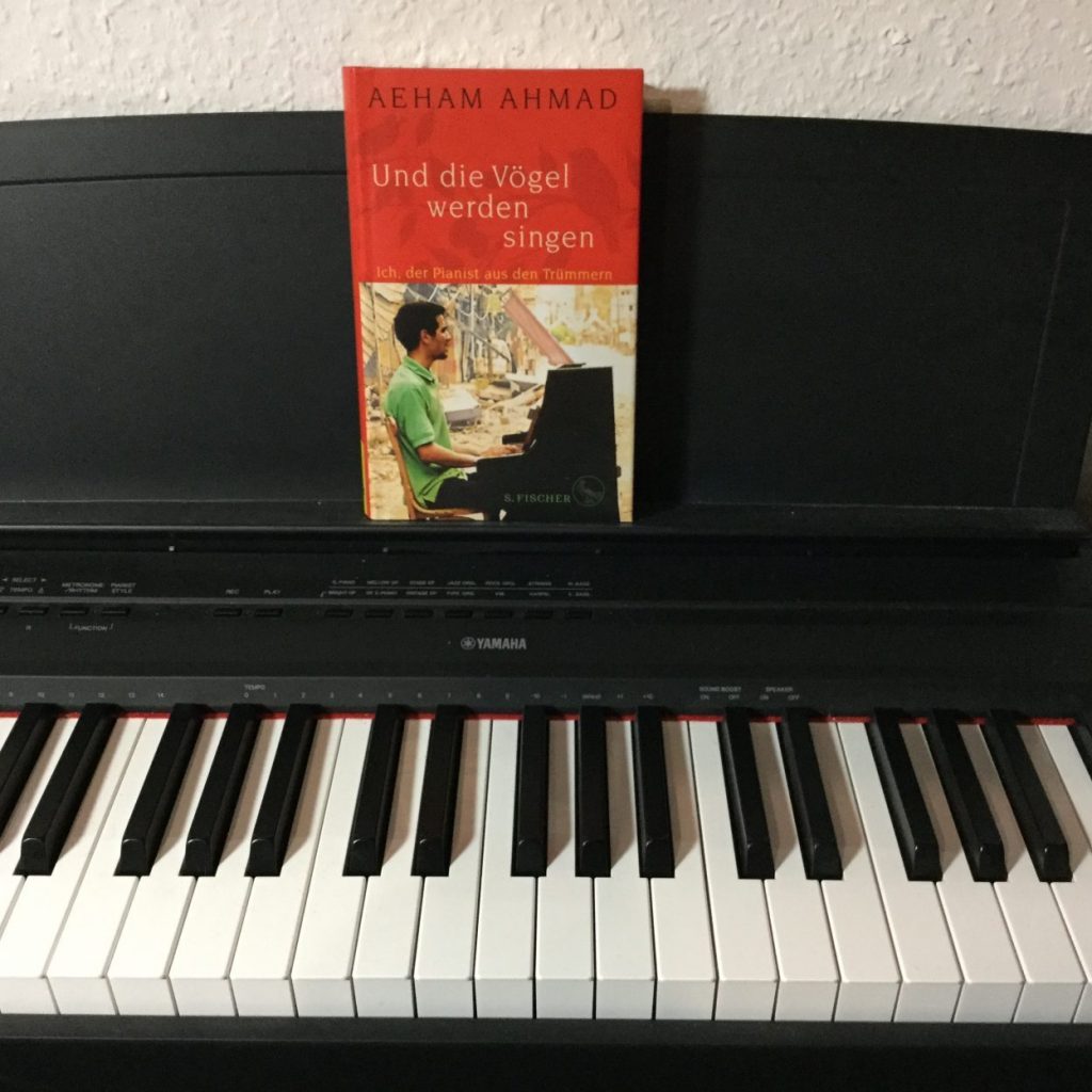 Der Autor wird 1988 in Damaskus geboren. Sein Vater ist blind und übernimmt die Erziehung, seine Mutter verdient als Grundschullehrerin den Lebensunterhalt für die Familie. Aeham wird schon früh von seinem Vater dazu ermuntert, das Klavierspielen zu erlernen. Er hat Talent und so werden seine Kindheit und Jugend durch den Besuch der Musikschulen und dem stetigen Üben geprägt. Die Eltern träumen von einem Sohn, der Konzertpianist wird, doch Aeham, der inzwischen selbst komponiert, ist auf der Suche nach einem anderen Weg, um mit Musik Geld zu verdienen. So hilft er erst einmal seinem Vater in dessen neuem, schnell gutgehenden Musikladen und heiratet Tahani. Einige Monate später, beide erwarten ihr erstes Kind, beginnt der Krieg. Der Stadtteil Yarmouk, in dem hauptsächlich geflüchtete Palästinenser leben, die Syrien in den 60er Jahren aufgenommen hat, wird abgeriegelt und schon bald geht es nur noch ums nackte Überleben. Nahrung und Medizin werden knapp, unübersichtlich und nicht erklärbar sind die diversen politischen Gruppierungen, die in Yarmouk versuchen, die Herrschaft zu erlangen. Bomben zerstören ganze Straßenzüge, Scharfschützen schießen grundlos auf Zivilisten. In dieser Situation beschließt Aeham ein Zeichen zu setzen und stellt sich mit seinem Klavier auf die Straße. Er spielt für einen Männerchor, später singen Kinder zu seinen Liedern. Das Foto vom Buchvover geht um die Welt, Aeham wird berühmt. Das ist nicht nur gut, es bringt ihn auch in Gefahr, da er den Kriegsparteien jetzt ein Dorn im Auge ist. So muss er 2014 flüchten, alleine, und lässt Eltern, seine Frau und inzwischen zwei Kinder zurück. Er kommt irgendwann nach Deutschland, wo man ihn kennt und schon bald gibt er erste Konzerte. Seine Familie darf ihm nach deutschen Gesetzen nicht folgen. Er leidet sehr darunter, doch dann findet eine Veranstalterin ein gesetzliches Schlupfloch für eine Familienzusammenführung und Sommer 2016 ist es soweit, er sieht seine Familie wieder. Damit endet das Buch.